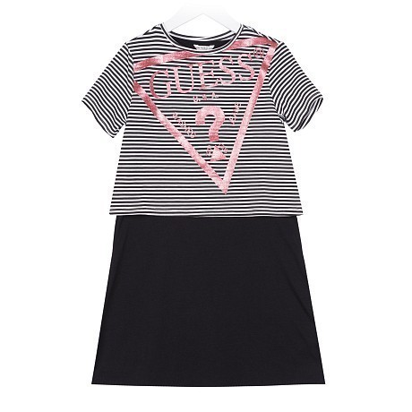 Платье Guess – это идеальный выбор для стильных девочек! Изготовленное из 95% хлопка и 5% эластана, оно украшено ярким принтом Guess и контрастной полоской. Контрастная полоска и принт Guess создают модный и современный образ, который подчеркнет индивидуальность вашего ребенка. На фотографии видна аккуратная полоска по краю и мягкая текстура ткани. Качество от бренда из Индии и внимание к деталям делают эту модель отличным выбором для вашего ребенка!
