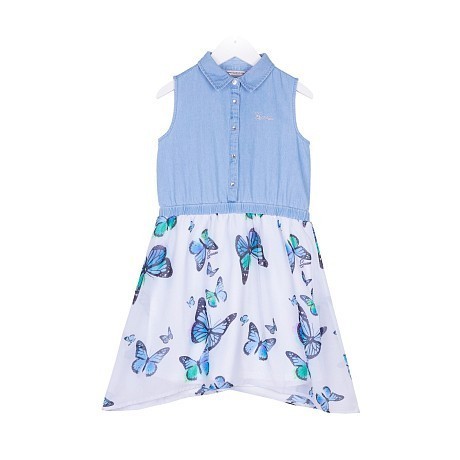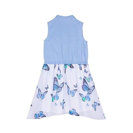 Платье Guess – это идеальный выбор для маленьких модниц! Изготовленное из 100% хлопка с подкладкой из 100% полиэстера, оно украшено очаровательными бабочками разноцветных оттенков на белом фоне. Голубая верхняя часть с белыми пуговицами создает нежный и стильный образ. На фотографиях видны аккуратные бабочки с разноцветными крыльями и белые пуговицы на голубом фоне. Качество от бренда из Китая и внимание к деталям делают эту модель отличным выбором для вашего ребенка!