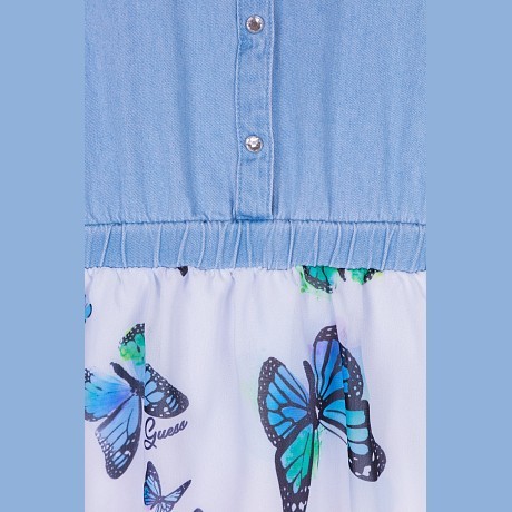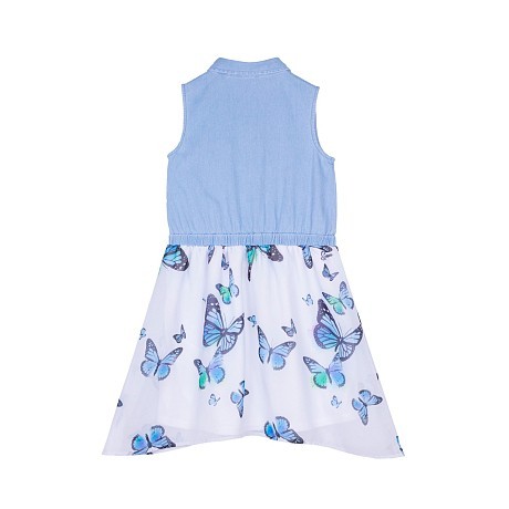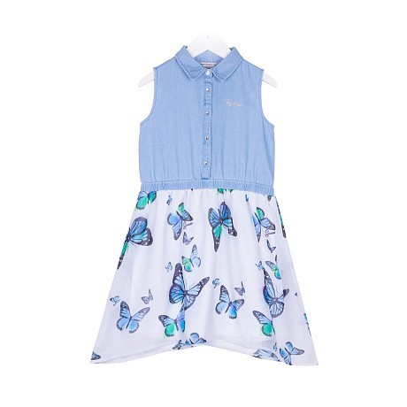 Платье Guess для девочек – это идеальный выбор для стильных и комфортных образов! Изготовленное из 100% хлопка с подкладкой из 100% полиэстера, оно украшено очаровательными бабочками разноцветных оттенков. Нежная белая основа с яркими бабочками создает легкое и в то же время стильное настроение. На фотографии видна аккуратная голубая окантовка по краю и мягкая текстура ткани. Качество от китайского бренда и внимание к деталям делают эту модель отличным выбором для вашего ребенка!