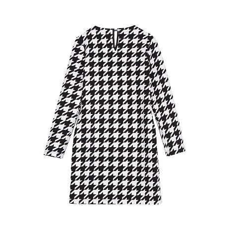Платье Guess – это идеальный выбор для стильных девочек! Изготовленное из комбинации 67% полиэстера, 29% вискозы и 4% эластана, оно украшено элегантным принтом в клетку и дополнено молниями по бокам. Классический черно-белый принт в клетку с яркими молниями создает модный и удобный образ. На фотографиях видна аккуратная текстура ткани, молнии по бокам и логотип Guess на воротнике. Качество от бренда из США делает эту модель отличным выбором для вашего ребенка!