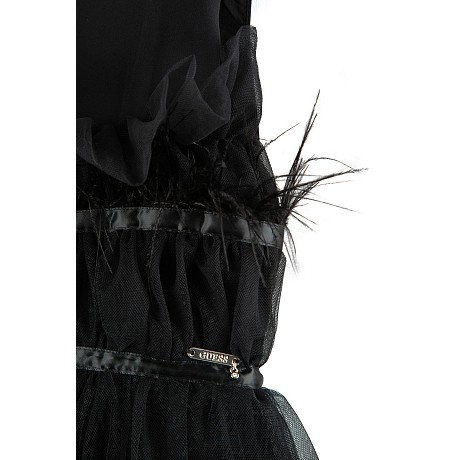 Платье Guess для девочек – идеальный выбор для особенных случаев! Изготовленное из 100% полиэстера и полиамида с подкладкой из 100% хлопка, оно украшено пышной юбкой и перьями. Черный цвет создает стильный и элегантный образ, а пышная юбка придает платью нежность и изысканность. На фотографии видна пышная юбка с перьями и эластичная резинка на талии. Качество от американского бренда Guess делает это платье отличным выбором для вашего ребенка!