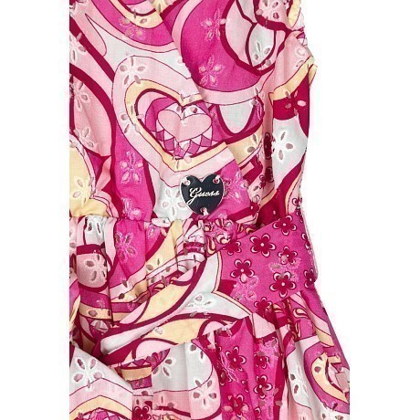 Платье Guess – это идеальный выбор для девочек 12 лет! Изготовленное из 100% хлопка, оно украшено ярким розовым принтом с узорами в виде цветов и листьев. Эластичная резинка по талии обеспечивает удобную посадку и комфорт. На фотографиях видна аккуратная розовая резинка и мягкое хлопковое платье с ярким принтом. Качество от бренда из США и внимание к деталям делают эту модель отличным выбором для вашего ребенка!