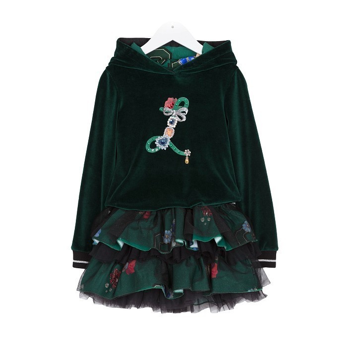 Платье для девочек Lapin House с зеленым бархатом и брошью
