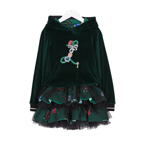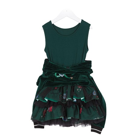 Платье Lapin House – это идеальный выбор для маленьких модниц! Изготовленное из 66% полиамида, 28% хлопка и 6% вискозы, оно украшено зеленым бархатом и брошью. Подкладка из 96% хлопка и 4% эластана делает платье мягким и комфортным. На фотографии видна аккуратная зеленая брошь с бриллиантами и бусинами, а также мягкая текстура бархата. Качество от бренда из Греции и внимание к деталям делают эту модель отличным выбором для вашего ребенка!