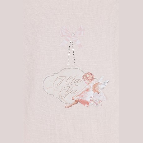 - 🎨 Дизайн: принт ангела, надпись 'I Love You', белые воланы, декоративная вышивка