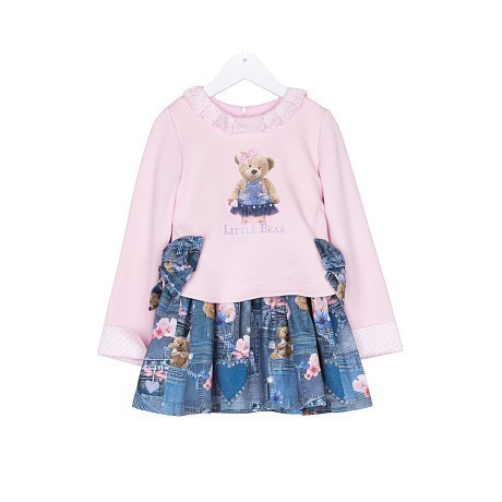 Платье для девочек Lapin House – это идеальный выбор для вашего маленькой принцессы! Изготовленное из 47% хлопка, 46% вискозы, 5% полиэстера и 2% эластана, оно украшено очаровательным принтом медведя в джинсовой куртке и цветочками на белом фоне. Нежная розовая основа с яркими голубыми и розовыми акцентами создает игривое и в то же время уютное настроение. На фотографиях видна аккуратная белая окантовка по краю и мягкая текстура ткани. Качество от бренда из Греции и внимание к деталям делают эту одежду отличным выбором для вашего ребенка!