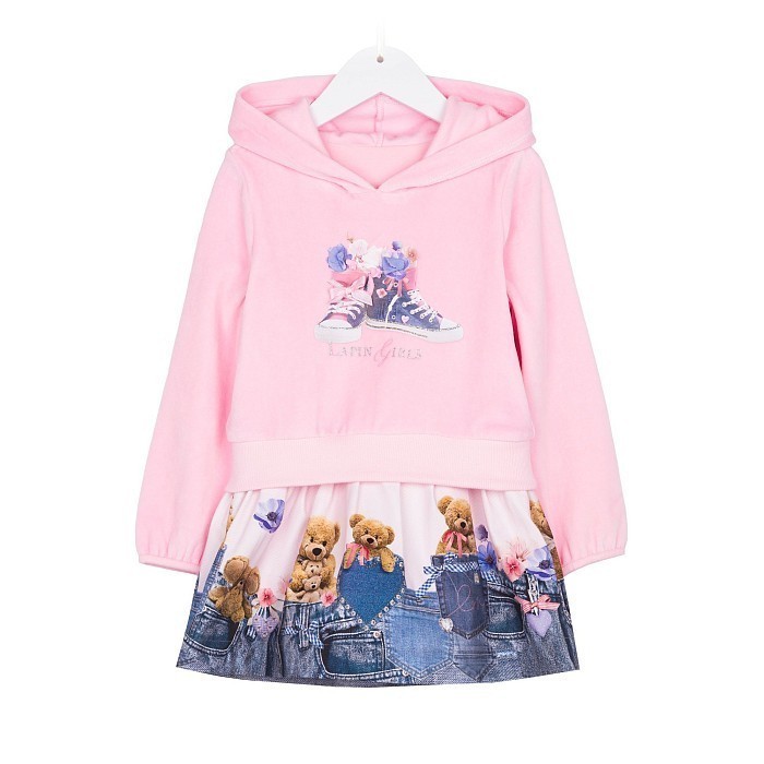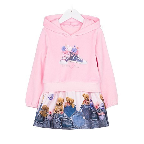 Розовое платье для девочек Lapin House с принтом обуви и медведей - доставка СДЭК по всей России - 82E3274/18-02