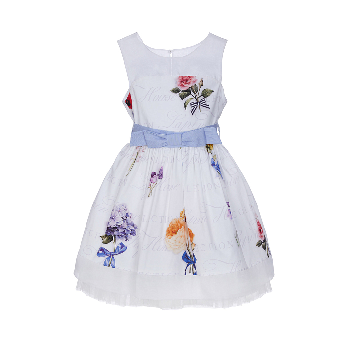 Платье для девочек Lapin House – это идеальный выбор для маленьких модниц! Изготовлено из 70% хлопка, 28% шёлка и 2% эластана, а подкладка выполнена из 71% полиамид и 29% хлопка. Элегантный цветочный принт с розами, гортензиями и лентами создает нежный и романтичный образ. На фото видна аккуратная голубая лента на талии и мягкая текстура ткани. Качество от бренда из Греции и внимание к деталям делают это платье отличным выбором для вашего ребенка!