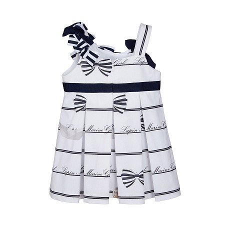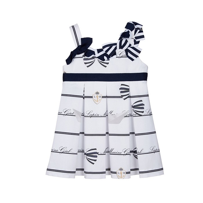 Платье Lapin House – это идеальный выбор для девочек! Изготовленное из 97% хлопка и 3% эластана, оно украшено очаровательным принтом Marine Girl. Нежная белая основа с черными полосами и морскими элементами создает морской стиль и уют. На платье видны аккуратные белые бантовидные детали на бретелях и логотип Lapin House на груди. Качество от бренда из Греции и внимание к деталям делают это платье отличным выбором для вашего ребенка!