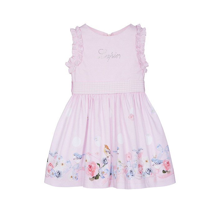 Платье для девочек Lapin House – это идеальный выбор для маленьких модниц! Изготовленное из 92% хлопка, 5% полиэстера и 3% эластана, оно украшено нежным цветочным принтом с розами, бабочками и птичками на светло-розовом фоне. Нежные рюши на плечах и пояске делают платье еще более очаровательным. Качество от бренда из Греции и внимание к деталям делают это платье отличным выбором для вашего ребенка!