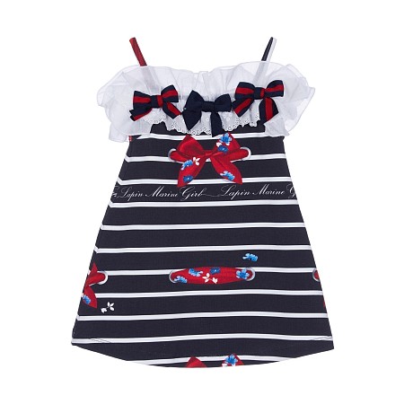 Платье для девочки Lapin House – это идеальный выбор для маленьких морячков! Изготовленное из 96% хлопка и 4% эластана, оно украшено морским принтом с красными бантиками и белыми цветочками на синем фоне. Прекрасная белая окантовка по краю и мягкая текстура ткани создают нежный и уютный образ. На фотографиях видны аккуратные красные бантики, белые цветочки и морской принт с красными ракушками. Качество от бренда из Греции и внимание к деталям делают эту модель отличным выбором для вашего ребенка!