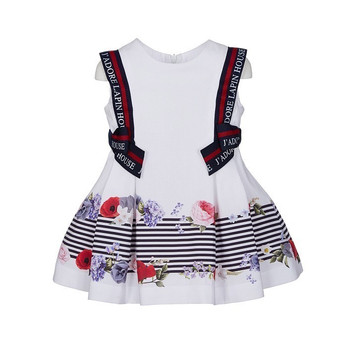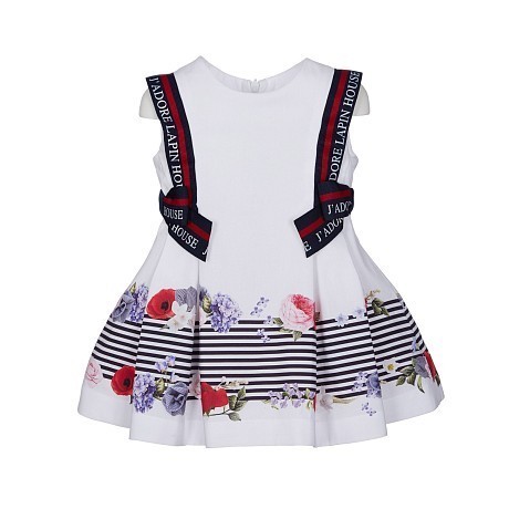 Платье для девочек Lapin House – это идеальный выбор для теплых дней! Изготовленное из 97% хлопка и 3% эластана, оно украшено очаровательным цветочным принтом с розами, пионами и хризантемами на белом фоне. Легкая подкладка из 100% хлопка обеспечивает комфорт и мягкость. Ленты на плечах с надписью "J'ADORE LAPIN HOUSE" добавляют стиль и оригинальность. На фотографиях видны аккуратные ленты с надписями, цветочные мотивы и мягкая текстура ткани. Качество от бренда из Греции и внимание к деталям делают эту модель отличным выбором для вашего ребенка!