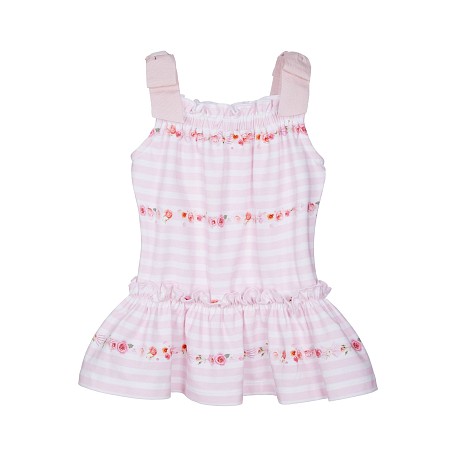 Платье для девочек Lapin House – это идеальный выбор для теплых дней! Изготовленное из 95% хлопка и 5% эластана, оно украшено розовыми полосками и нежными цветочками. Классический розовый цвет с белыми полосами создает очаровательный и нежный образ. На фото видна аккуратная розовая окантовка по краю и мягкая текстура ткани. Качество от бренда из Греции и внимание к деталям делают эту модель отличным выбором для вашего ребенка!