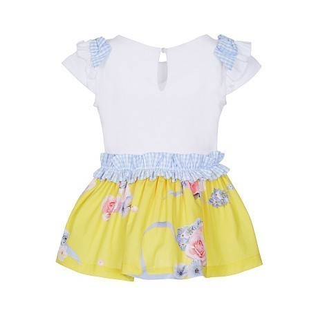 Платье Lapin House – это идеальный выбор для девочек! Изготовленное из 95% хлопка и 5% эластана, оно украшено очаровательными цветами и бантиками на белом фоне. Нежная белая основа с яркими цветами и бантиками создает яркое и веселое настроение. На фотографиях видна аккуратная голубая контрастная окантовка по краю и мягкая текстура ткани. Качество от бренда из Греции и внимание к деталям делают эту одежду отличным выбором для вашего ребенка!