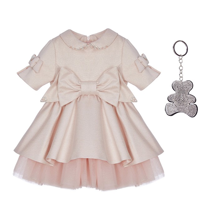 - 👗 Дизайн: розовые банты, пышная юбка, бусины на воротнике