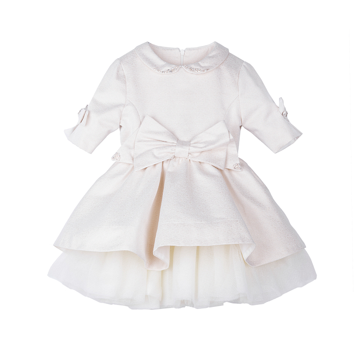 - 👗 Дизайн: длинный рукав, пышная юбка, аккуратная отделка края рукавов, банты