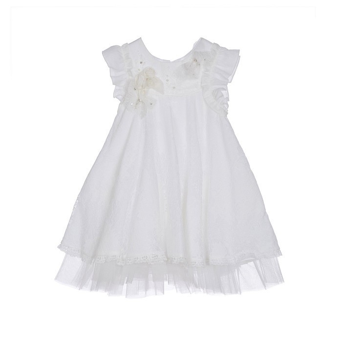 Платье для девочки Lapin House белое с кружевом и цветами - доставка СДЭК по всей России - 201E3143/20-01