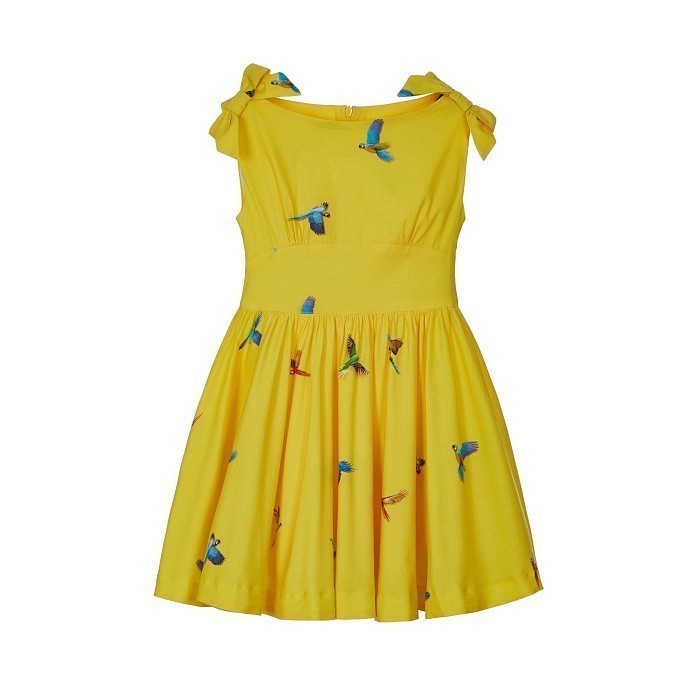 - 🎨 Дизайн: яркие попугаи на желтом фоне, эластичная резинка на плечах