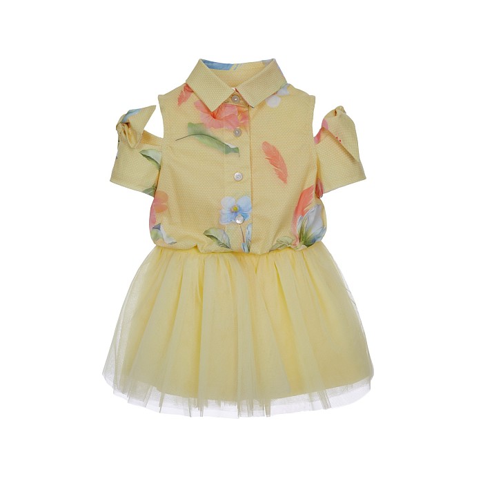 Платье для девочки Lapin House – это идеальный выбор для маленьких модниц! Изготовленное из комбинации 77% полиамида, 21% хлопка и 2% эластана, оно украшено очаровательным цветочным принтом на желтом фоне. Сетчатый подол придает платью легкость и воздушность, а рукава-фонарики делают образ еще более очаровательным. Качество от бренда из Греции и внимание к деталям делают это платье отличным выбором для вашего ребенка!