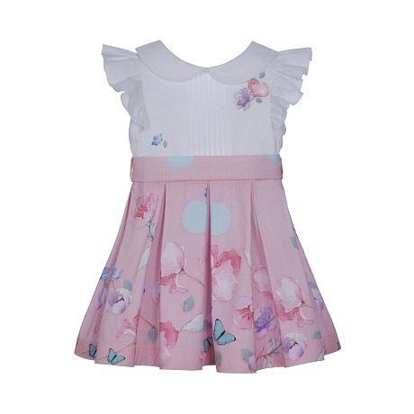 Платье Lapin House – это идеальный выбор для маленьких принцесс! Изготовленное из 97% хлопка и 3% эластана, оно украшено нежным цветочным принтом и бабочками на светло-розовом фоне. Крупные розовые и фиолетовые цветы, синие бабочки и белые полосы создают волшебный и нежный образ. На фото видна аккуратная белая горловина с воланами, нежная текстура ткани и удобная застежка на спинке. Качество от бренда из Греции и внимание к деталям делают эту модель отличным выбором для вашего ребенка!