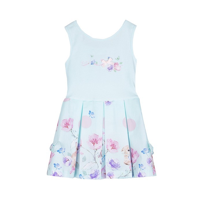 Платье для девочки Lapin House – это идеальный выбор для маленьких модниц! Изготовленное из 96% хлопка и 4% эластана, оно украшено нежным цветочным принтом с розовыми и белыми цветами, зелеными листьями и бабочками на светло-голубом фоне. Эластичная посадка обеспечивает комфорт и удобство при движении. На платье видна аккуратная розовая лента с бантиком и нежная текстура ткани. Качество от бренда из Греции и внимание к деталям делают эту модель отличным выбором для вашего ребенка!