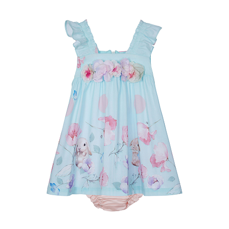Платье для девочки Lapin House с цветочным принтом и зайчиками