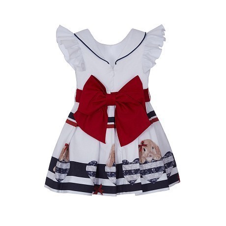 Платье Lapin House – это идеальный выбор для девочек! Изготовленное из 98% хлопка и 2% эластана, оно украшено очаровательными кроликами и сердечками на белом фоне. Нежная белая основа с яркими красными и черными акцентами создает игривое и винтажное настроение. На фотографиях видны аккуратные кролики в сердечках, контрастная красная окантовка по краю и мягкая текстура ткани. Качество от бренда из Греции и внимание к деталям делают эту модель отличным выбором для вашего ребенка!