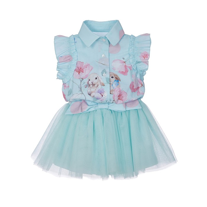 Платье Lapin House – это идеальный выбор для маленьких принцесс! Изготовленное из комбинации 97% хлопка и 3% эластана, оно украшено очаровательными зайчиками и цветочным принтом. Блузка с короткими рукавами и воротничком, а также юбка из легкой сетки создают нежный и волшебный образ. На фотографии видны милые зайчики, розовые цветы и нежная сетка. Качество от бренда из Греции и внимание к деталям делают это платье отличным выбором для вашего ребенка!