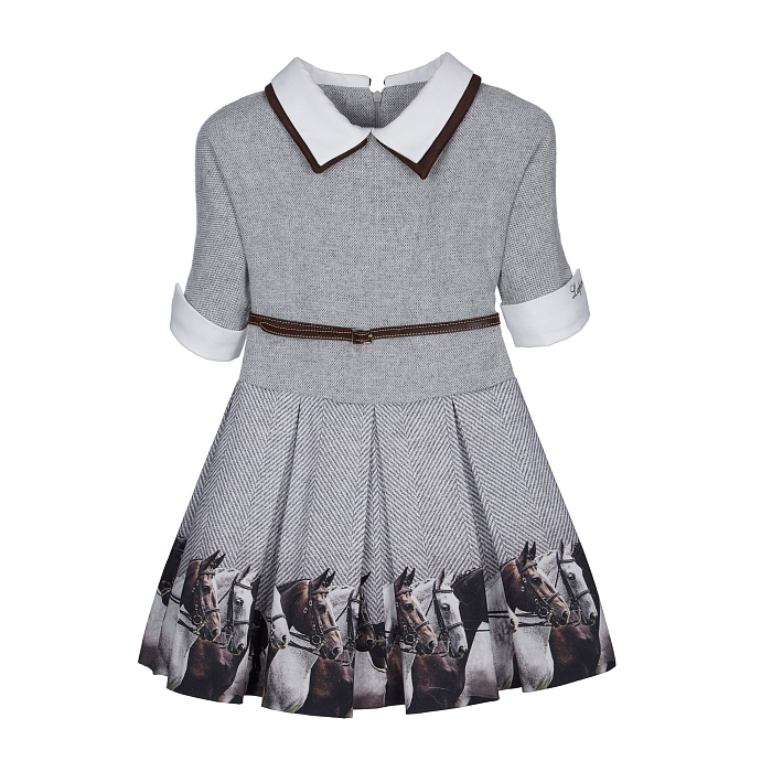 Платье Lapin House – это идеальный выбор для маленьких модниц! Изготовленное из комбинации 40% хлопка, 33% полиэстера, 14% акрила, 10% шерсти и 3% эластана, оно дополнено белым воротником и стильным принтом лошадей. Нежная ткань с аккуратными деталями и ярким принтом создает неповторимый образ. На фотографиях видна аккуратная белая окантовка воротника и мягкая текстура ткани. Качество от бренда из Греции и внимание к деталям делают эту модель отличным выбором для вашего ребенка!