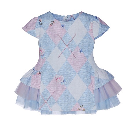 Платье для девочек Lapin House с принтом в клетку и цветочками