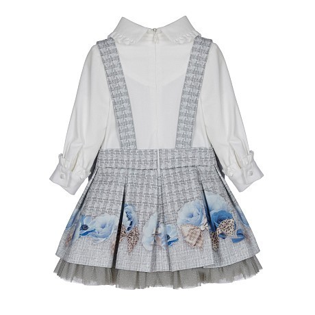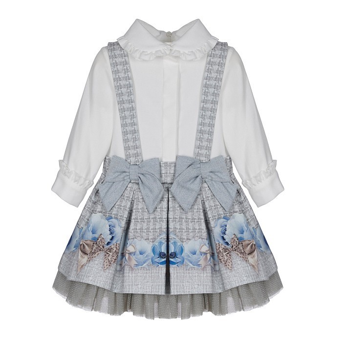 Платье Lapin House – это идеальный выбор для девочек! Верх выполнен из белого хлопкового полотна, а на подкладке – из 100% хлопка. Нижняя часть платья украшена серым принтом с изображением голубых цветов и бежевых бантиков. Качество ткани и деталировка делают это платье не только стильным, но и комфортным. На фотографиях видны аккуратные складки, мягкая текстура ткани и изящные бежевые бантики на юбке. Платье подходит для девочек от 2 до 6 лет.