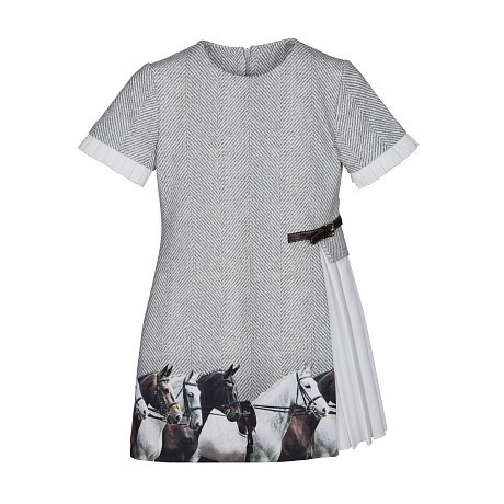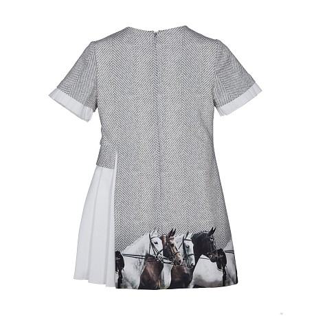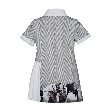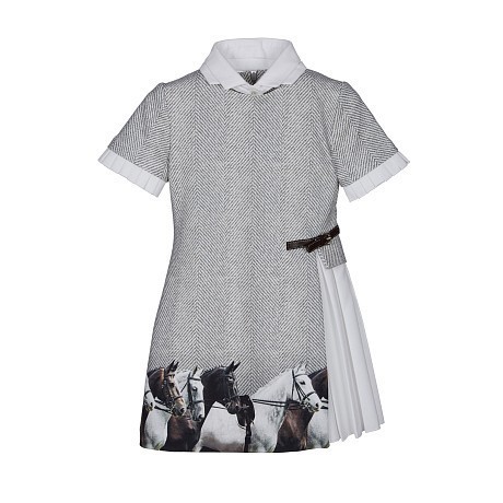 Платье Lapin House – это идеальный выбор для стильных девочек! Изготовленное из 73% хлопка, 23% полиэстера и 4% эластана, оно украшено очаровательным принтом лошадей и белым подкладом. Элегантный крой и белая подкладка создают нежный и изысканный образ. На фотографии видна аккуратная белая подкладка по краю и мягкая текстура ткани. Качество от бренда из Греции и внимание к деталям делают эту модель отличным выбором для вашего ребенка!