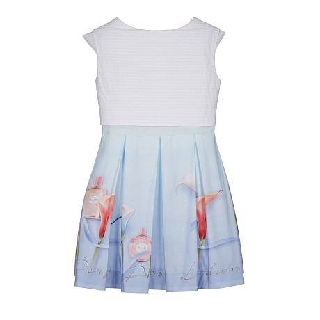 Платье Lapin House – это идеальный выбор для маленьких модниц! Изготовленное из 90% хлопка, 7% шелка и 3% лайкры, оно дополнено подкладкой из 100% хлопка. Принт на платье включает в себя изысканные цветы и изящные бутылочки, создавая нежный и стильный образ. Нежно-голубой фон с яркими розовыми и белыми цветами и аккуратными бутылочками создает волшебное настроение. На фотографиях видна аккуратная отделка по краю и мягкая текстура ткани. Качество от бренда из Греции и внимание к деталям делают это платье отличным выбором для вашего ребенка!