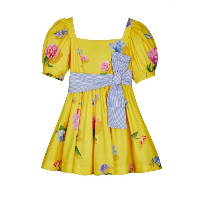 Желтое платье для девочки Lapin House с цветочным принтом и бантом