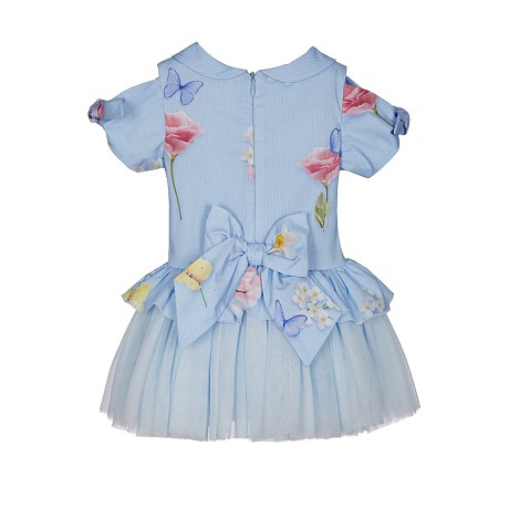 Платье Lapin House – это идеальный выбор для маленьких модниц! Изготовлено из 60% нейлона, 39% хлопка и 1% лайкры, а также подкладка из 65% хлопка и 35% тактеля. Нежная голубая основа с изысканными цветочными принтами, включая розы, гортензии и бабочки, создает неповторимую романтичность. На фото видны аккуратные кружевные вставки по краю и элегантная текстура ткани. Качество от бренда из Греции и внимание к деталям делают эту модель отличным выбором для вашего ребенка!