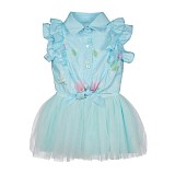 - 🎨 Дизайн: голубой цвет, цветочные принты, пышная юбка из тюля