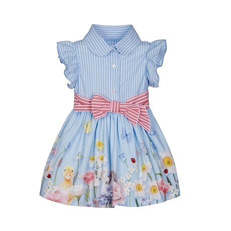 Платье для девочек Lapin House – это идеальный выбор для весны! Изготовленное из 99% хлопка и 1% лайкры, оно украшено очаровательными цветами и уточками на голубом фоне. Мягкая ткань и удобная посадка создают комфорт и уют для вашего ребенка. На фотографии видна аккуратная белая окантовка по краю и розовая лента с бантом. Качество от бренда из Греции и внимание к деталям делают эту модель отличным выбором для вашего малыша!
