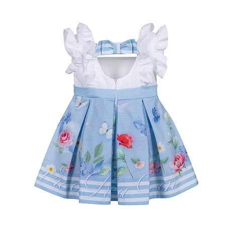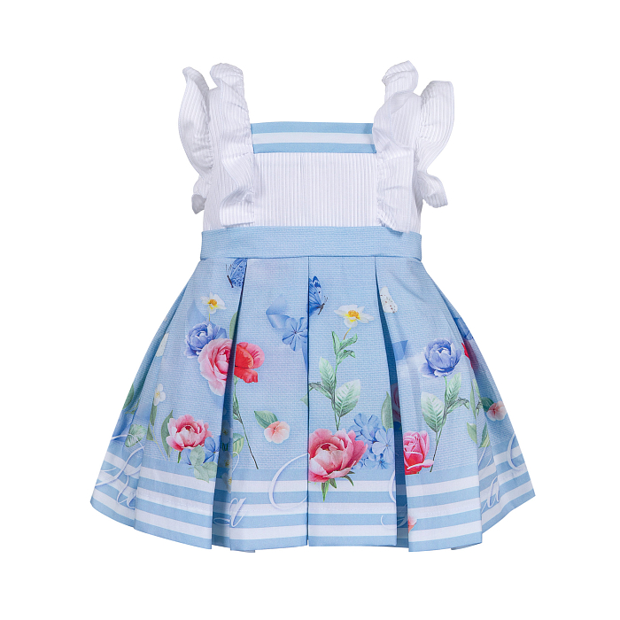 Платье для девочки Lapin House – это идеальный выбор для маленьких модниц! Изготовленное из 86% хлопка, 12% тактеля и 2% лайкры, оно украшено очаровательным цветочным принтом с бабочками на голубом фоне. Нежная ткань с яркими цветами и бабочками создает нежное и романтичное настроение. На фотографиях видна аккуратная белая верхняя часть с оборками и мягкая текстура ткани. Качество от бренда из Греции и внимание к деталям делают эту модель отличным выбором для вашего ребенка!