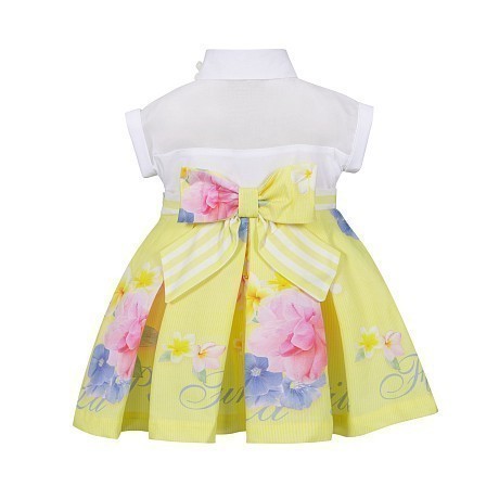 Платье для девочек Lapin House – это идеальный выбор для весеннего наряда! Изготовленное из 87% хлопка, 11% шелка и 2% лайкры, оно дополнено подкладкой из 65% хлопка и 35% тактеля. Белая блузка с короткими рукавами и цветочным принтом на желтой юбке создает нежный и элегантный образ. Воротник с цветочными аппликациями и бантик на спине делают платье еще более привлекательным. На фотографиях видны яркие цветы на желтой юбке и белая блузка с цветочными аппликациями. Качество от Греции и внимание к деталям делают это платье отличным выбором для вашего ребенка!