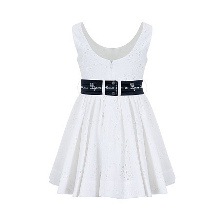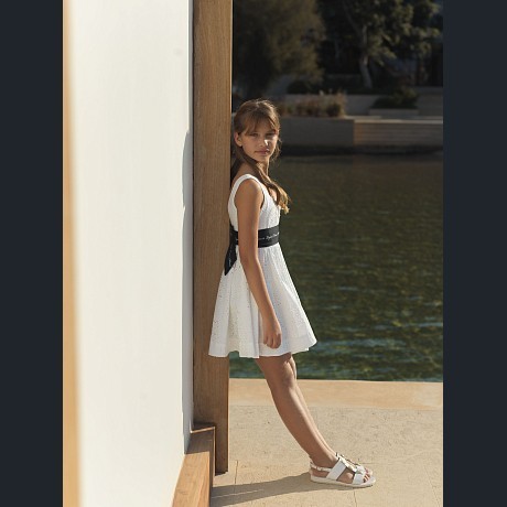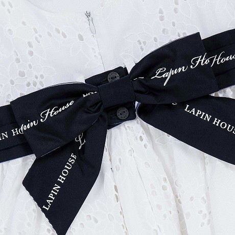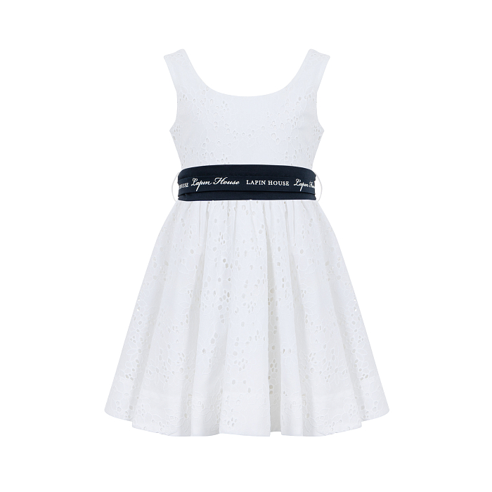 Платье для девочек Lapin House белое с черным поясом - доставка СДЭК по всей России - 231E3163/23-01