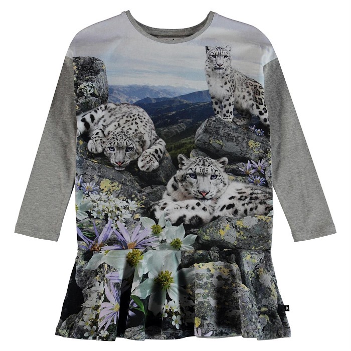 Платье Molo – это идеальный выбор для маленьких модниц! Изготовленное из 95% хлопка и 5% эластана, оно украшено очаровательными снежными леопардами и цветами на фоне гор. Нежная ткань с яркими принтами создает стильный и комфортный образ. На фотографии видны аккуратные детали платья: длинные рукава, округлый вырез горловины, мягкая текстура ткани и цветочные мотивы. Качество от бренда из Украины и внимание к деталям делают эту модель отличным выбором для вашего ребенка!