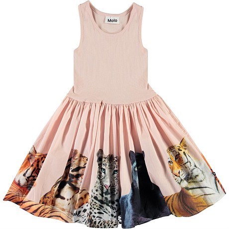 Платье Molo – это идеальный выбор для маленьких модниц! Изготовленное из 96% хлопка и 4% эластана, оно украшено ярким принтом с изображением тигров и леопардов на светло-розовом фоне. Нежная ткань и стильный принт создают неповторимый образ, который подчеркнет индивидуальность вашего ребенка. На фотографии видны четкие изображения тигров и леопардов, а также аккуратная резинка на горловине и мягкая текстура ткани. Качество от бренда из Индии и внимание к деталям делают эту модель отличным выбором для вашего ребенка!