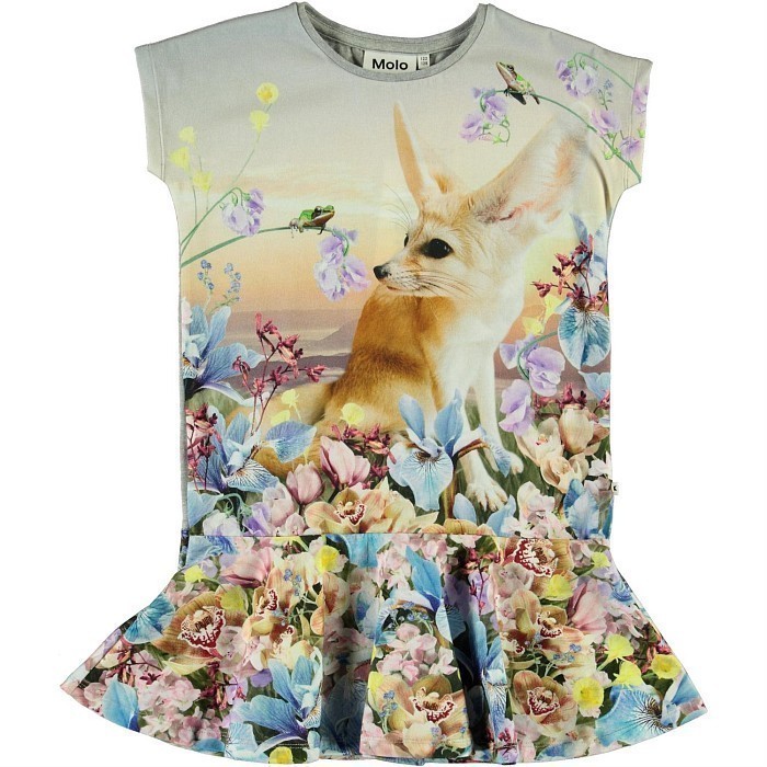 Платье Molo – это настоящий шедевр для маленьких модниц! Изготовленное из 95% хлопка и 5% эластана, оно украшено очаровательной лисой, сидящей среди разноцветных цветов. Яркие голубые, розовые и белые орхидеи, а также нежные фиолетовые цветы создают волшебную атмосферу. На фото видна аккуратная белая окантовка по краю и мягкое платье с пышной юбкой. Качество от датского бренда и внимание к деталям делают эту модель отличным выбором для вашего ребенка!