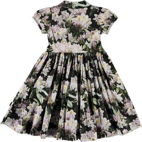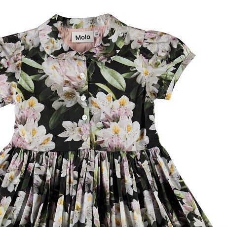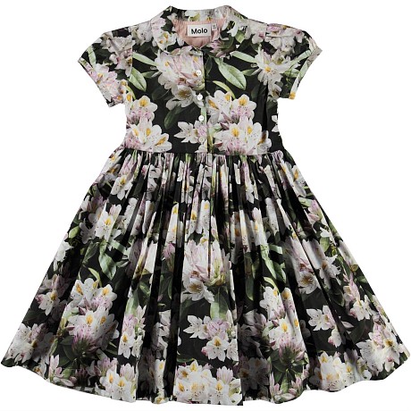 Платье Molo с изысканным цветочным принтом из органического хлопка и эластана – идеальный выбор для маленьких модниц! Красивые белые и розовые цветы на черном фоне создают нежный и стильный образ. Платье с короткими рукавами и пуговицами на груди обеспечивает удобство и комфорт. Качество от бренда из Дании делает это платье отличным подарком для вашего ребенка.