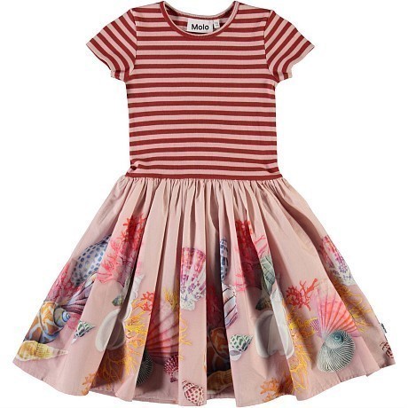 Платье для девочки Molo – это идеальный выбор для маленькой модницы! Изготовленное из 100% органического хлопка, оно украшено очаровательным морским принтом с ракушками и кораллами на нежно-розовом фоне. Круглый вырез горловины и короткий рукав создают комфорт и легкость. На фотографиях видны яркие морские мотивы: ракушки, кораллы, водоросли, которые создают волшебное настроение. Качество от бренда из Дании и внимание к деталям делают эту модель отличным выбором для вашего ребенка!