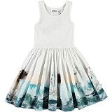 Платье для девочек Molo – это идеальный выбор для вашего маленькой принцессы! Изготовленное из 100% органического хлопка, оно украшено очаровательным принтом с изображением лошадей и морских волн. Нежная белая основа с яркими лошадьми и морскими волнами создает игривое и волшебное настроение. На фотографии видна аккуратная белая окантовка по краю и мягкая текстура ткани. Качество от бренда из Дании и внимание к деталям делают эту модель отличным выбором для вашего ребенка!