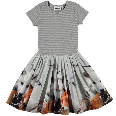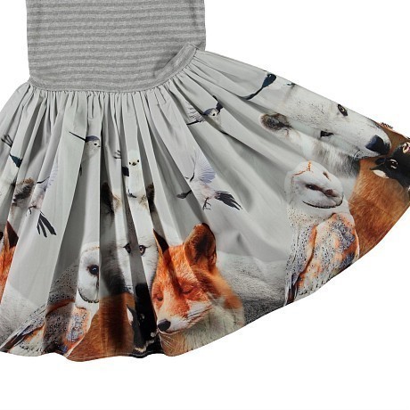 Платье Molo – это идеальный выбор для девочек! Изготовленное из 96% органического хлопка и 4% эластана, оно украшено очаровательным принтом с изображением животных: белых медведей, лис, белых птиц и других симпатичных персонажей. Нежная ткань с яркими животными создает игривое и в то же время уютное настроение. На фотографии видна аккуратная белая окантовка по краю и мягкая текстура ткани. Качество от бренда из Дании и внимание к деталям делают эту модель отличным выбором для вашего ребенка!