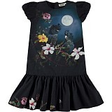 Платье Molo – это идеальный выбор для маленьких модниц! Изготовленное из 100% органического хлопка, оно украшено очаровательным принтом с попугаями и цветами. На фоне темно-синего неба с ярким луной и звездами, попугаи сидят на ветках, окруженные разноцветными цветами. Нежная черная основа с яркими акцентами создает стильный и в то же время уютный образ. На фотографии видны аккуратные детали платья: рукава с рюшами, воротник и мягкая текстура ткани. Качество от бренда из Дании и внимание к деталям делают это платье отличным выбором для вашего ребенка!