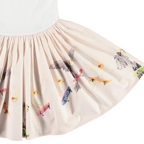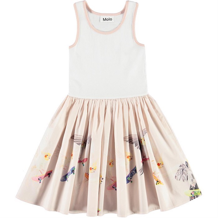 Платье для девочки Molo – это идеальный выбор для стильных и активных девочек! Изготовленное из 100% органического хлопка с эластаном, оно украшено очаровательными принтами птиц и скейтов на светло-розовом фоне. Нежная ткань с яркими принтами создает яркое и веселое настроение. На фотографии видны аккуратные складки на юбке и мягкая текстура ткани. Качество от бренда из Дании и внимание к деталям делают эту модель отличным выбором для вашего ребенка!