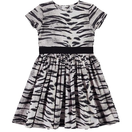 Платье для девочки Molo с элегантным принтом тигровых полос – идеальный выбор для вашего маленькой модницы! Изготовленное из 97% хлопка органического и 3% эластана, оно обеспечивает комфорт и мягкость. Принт тигровых полос придает платью уникальный и стильный вид, а эластичная резинка на талии обеспечивает идеальную посадку. Платье Molo – премиум качество из Дании, которое выделит вашу дочь среди других.